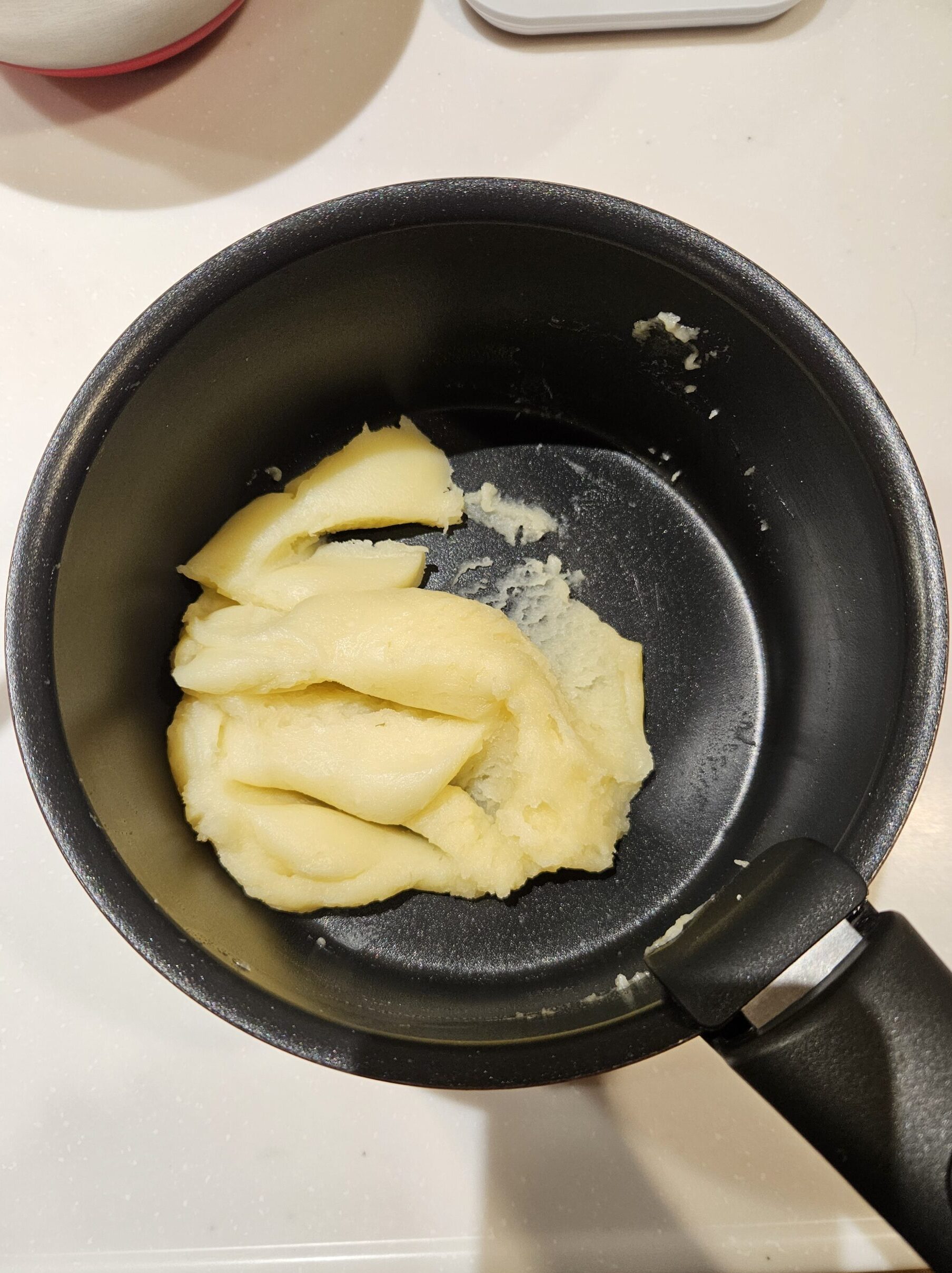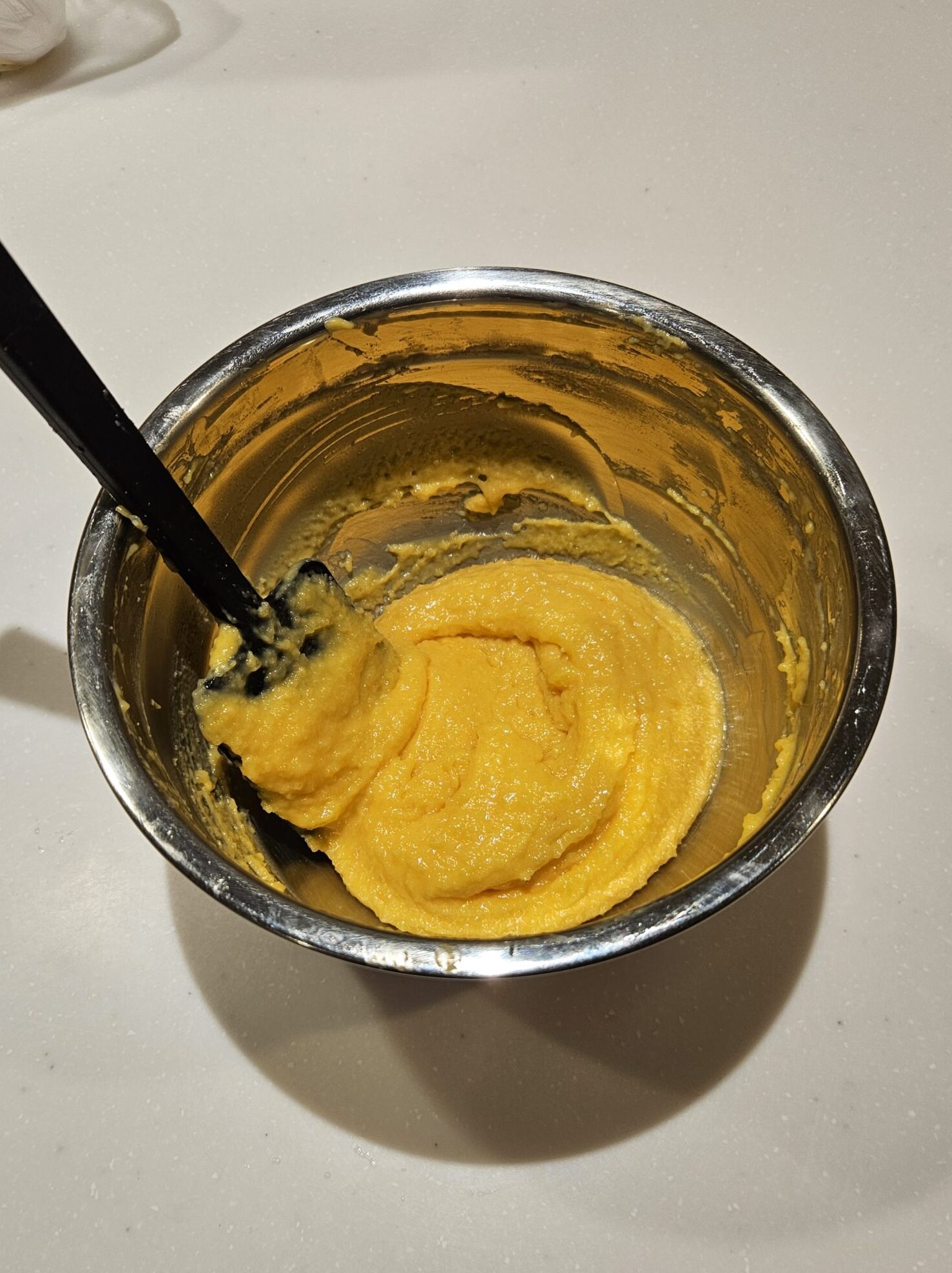 それは、薄力粉を加えた後の生地を火にかけて、加熱した工程です。(今回は加熱しすぎたけど…)