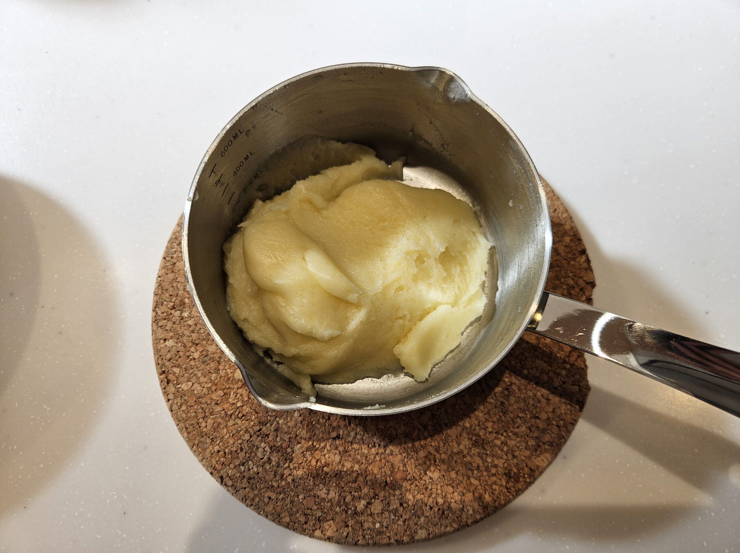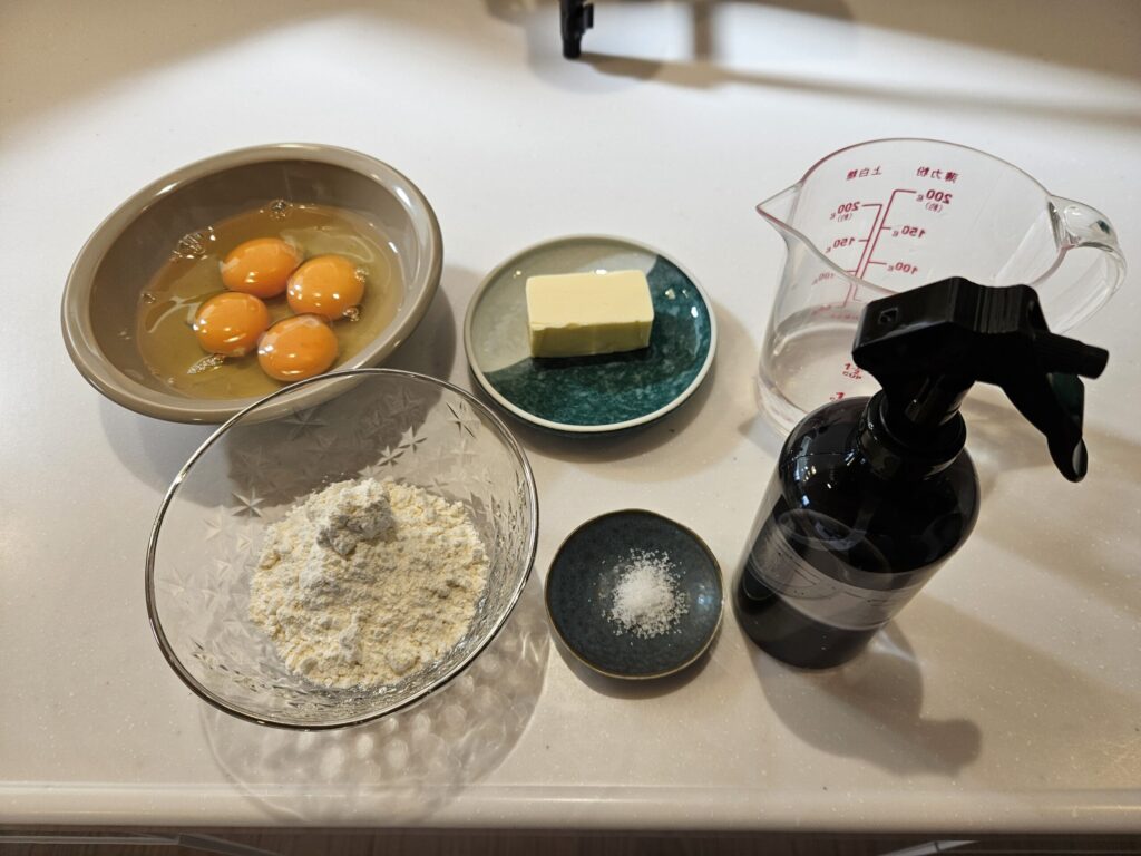 前回の反省を踏まえて、シュー生地作りに必要な材料を事前に計量しておきます。