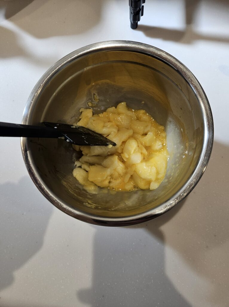 全卵を加え終わったとき、ボールの底がほんのり暖かかったらいい感じ