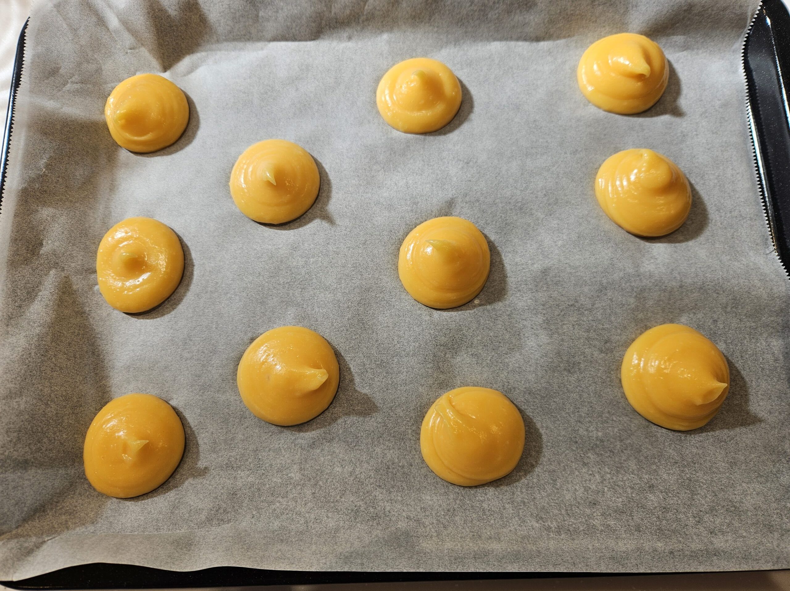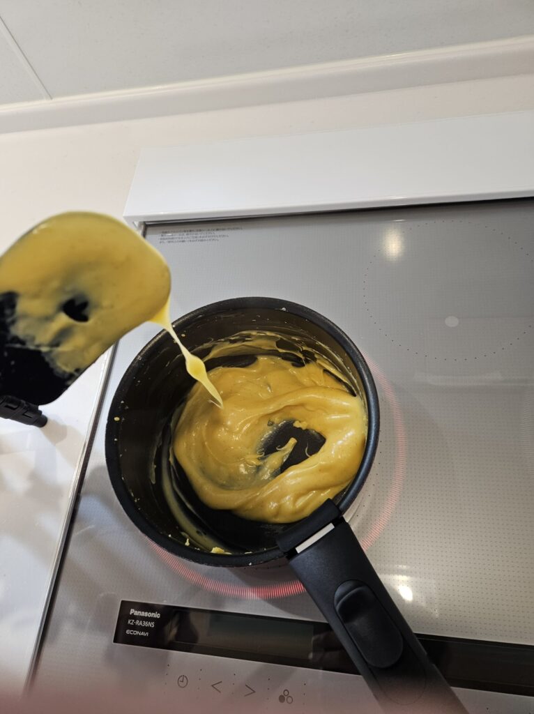 カスタードは冷やす時間が必要なので、シュー生地を作る前に準備効すると効率的なんだと思います。