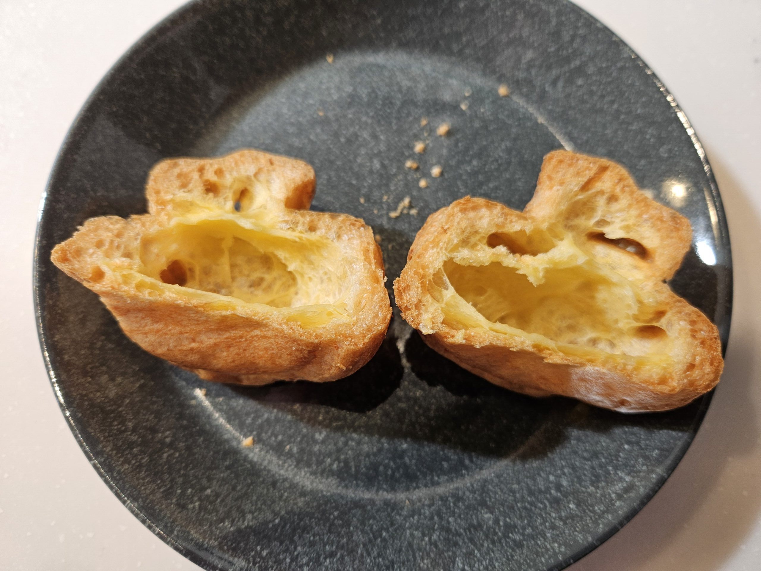 今回の挑戦では、シュー生地作りに成功しました。しかし、シュー生地作りはまだまだ奥が深いです。シュー生地の中に入れるクリームについても、分量が足りなかったりとレシピの完成度も低いため、再挑戦したいと考えています。