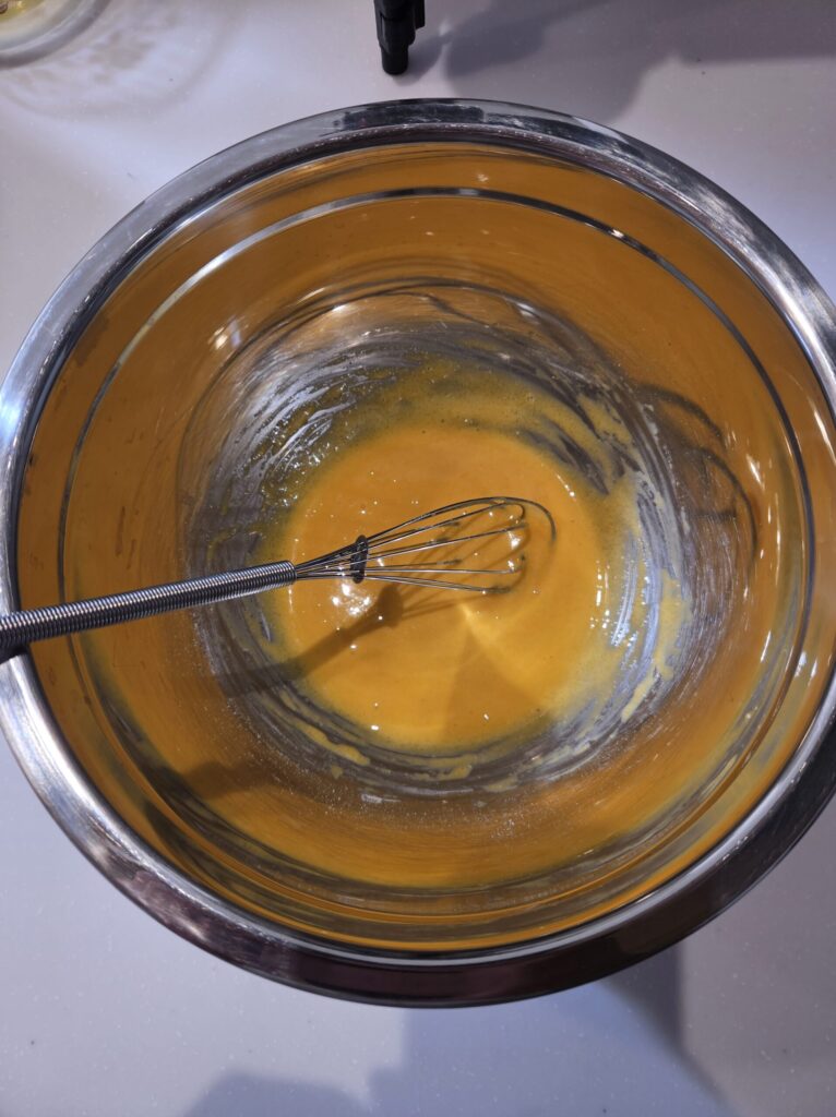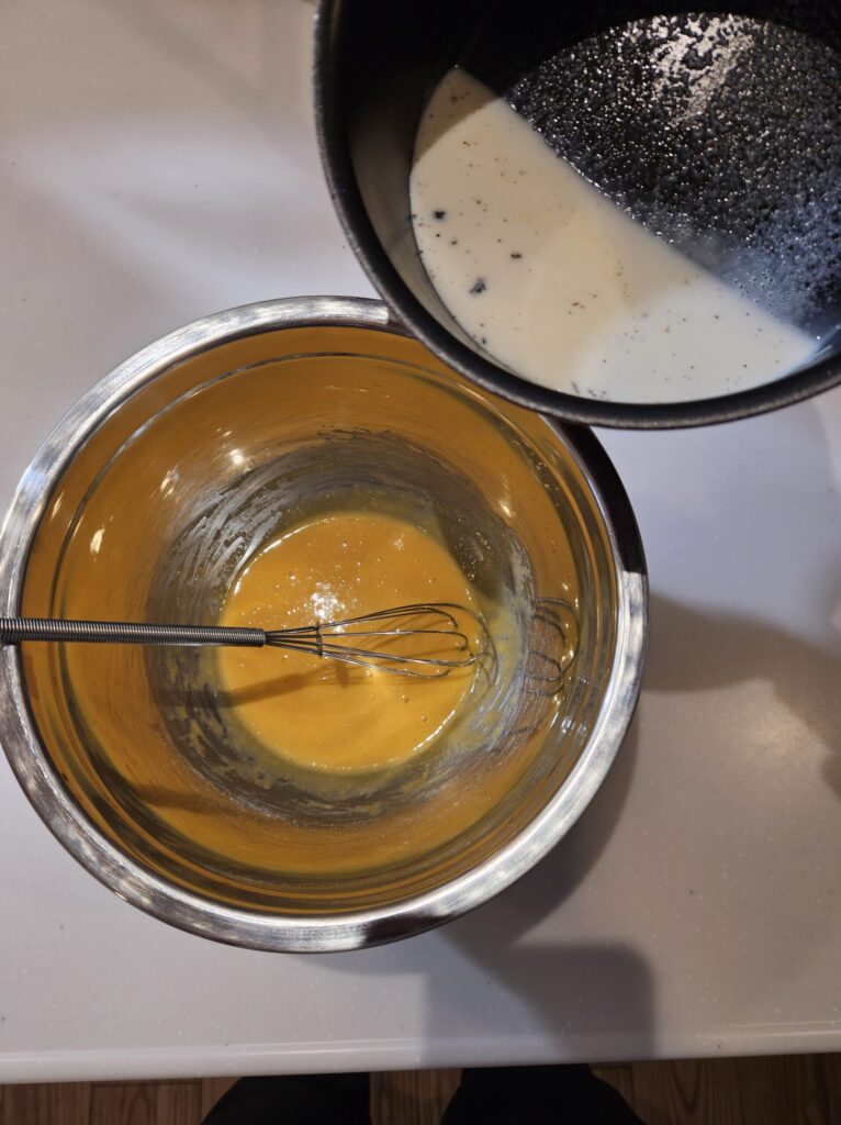 牛乳は複数回に分けて、卵黄に加えましょう。
