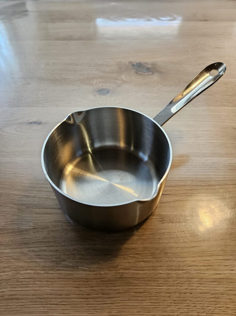 前回の挑戦では、テフロン加工の鍋を使用したところ、生地を加熱する工程で鍋底に生地の膜が張っているかわからず、加熱しすぎてしまったため、テフロン加工されていない鍋を使うことにしました。
