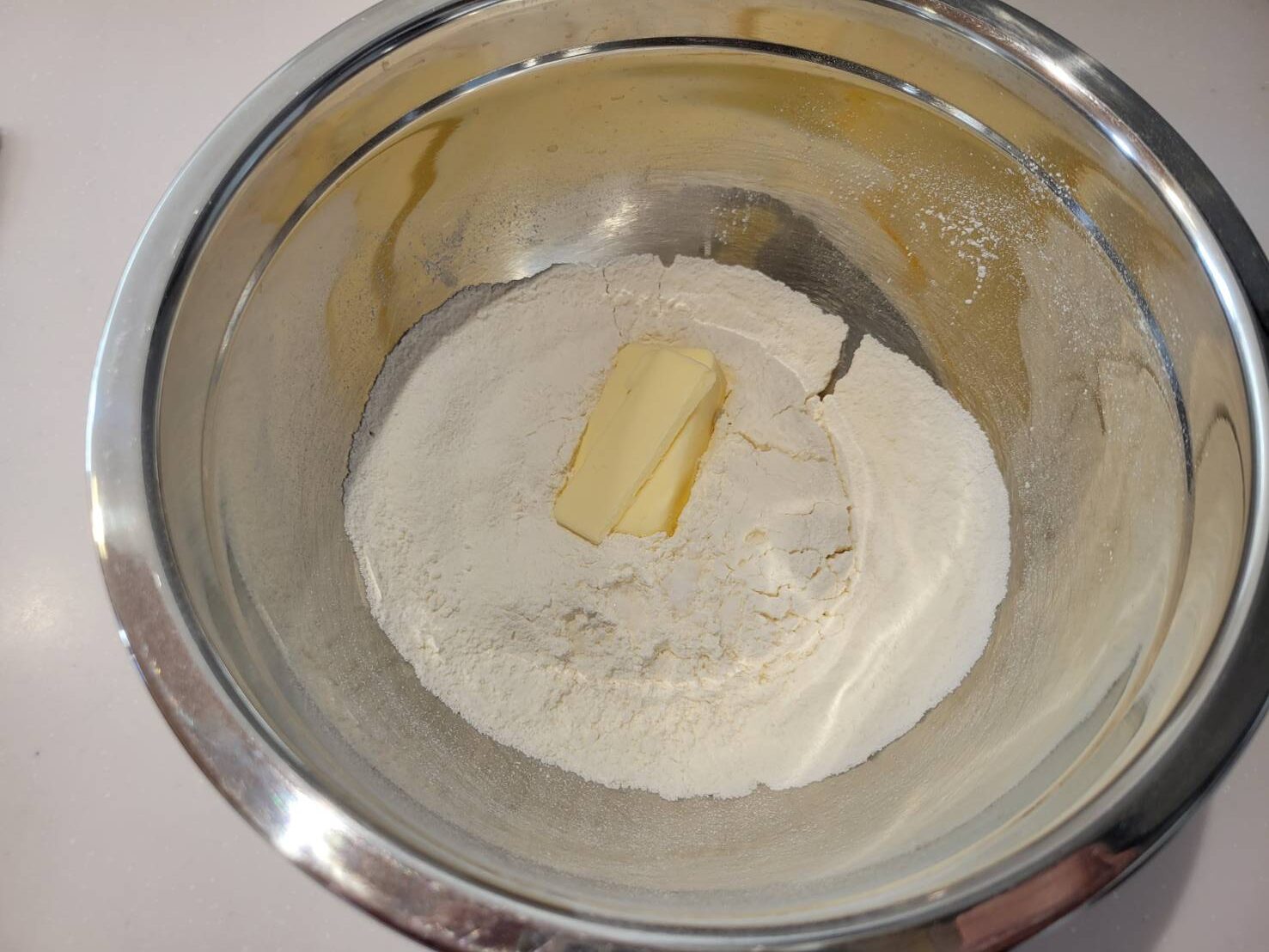 バターを取り出し、強力粉を振った台に置きます。