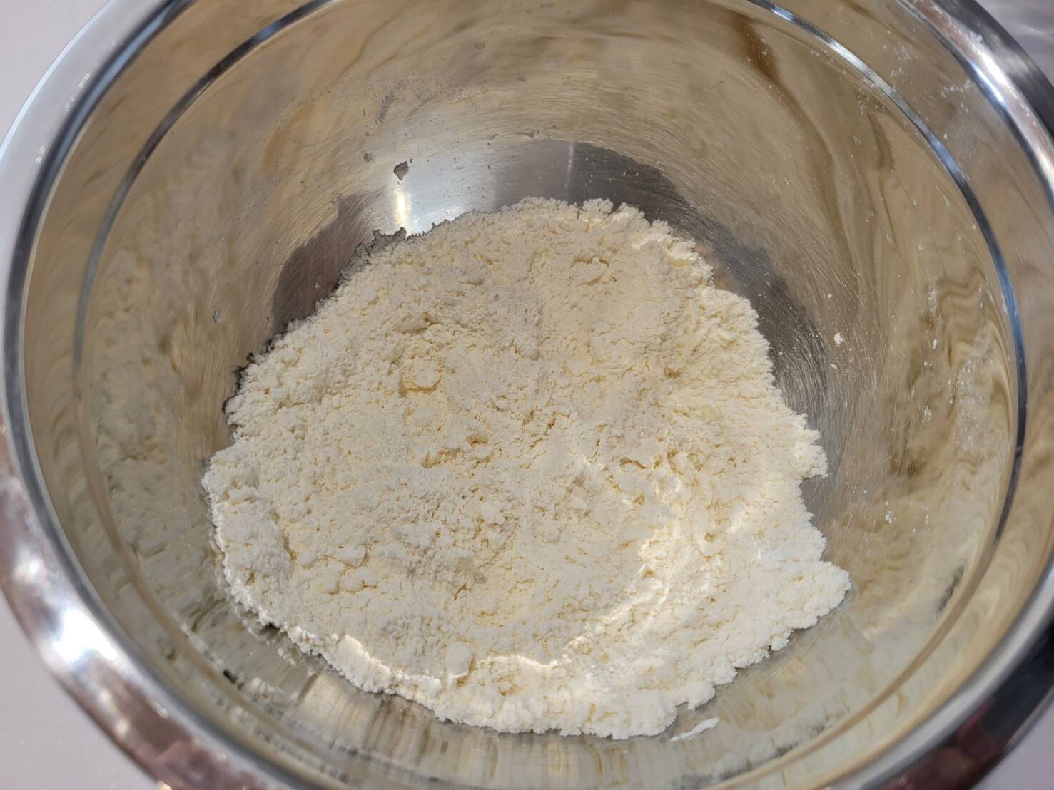 バターを図り取り、ちぎりながら入れていきます。