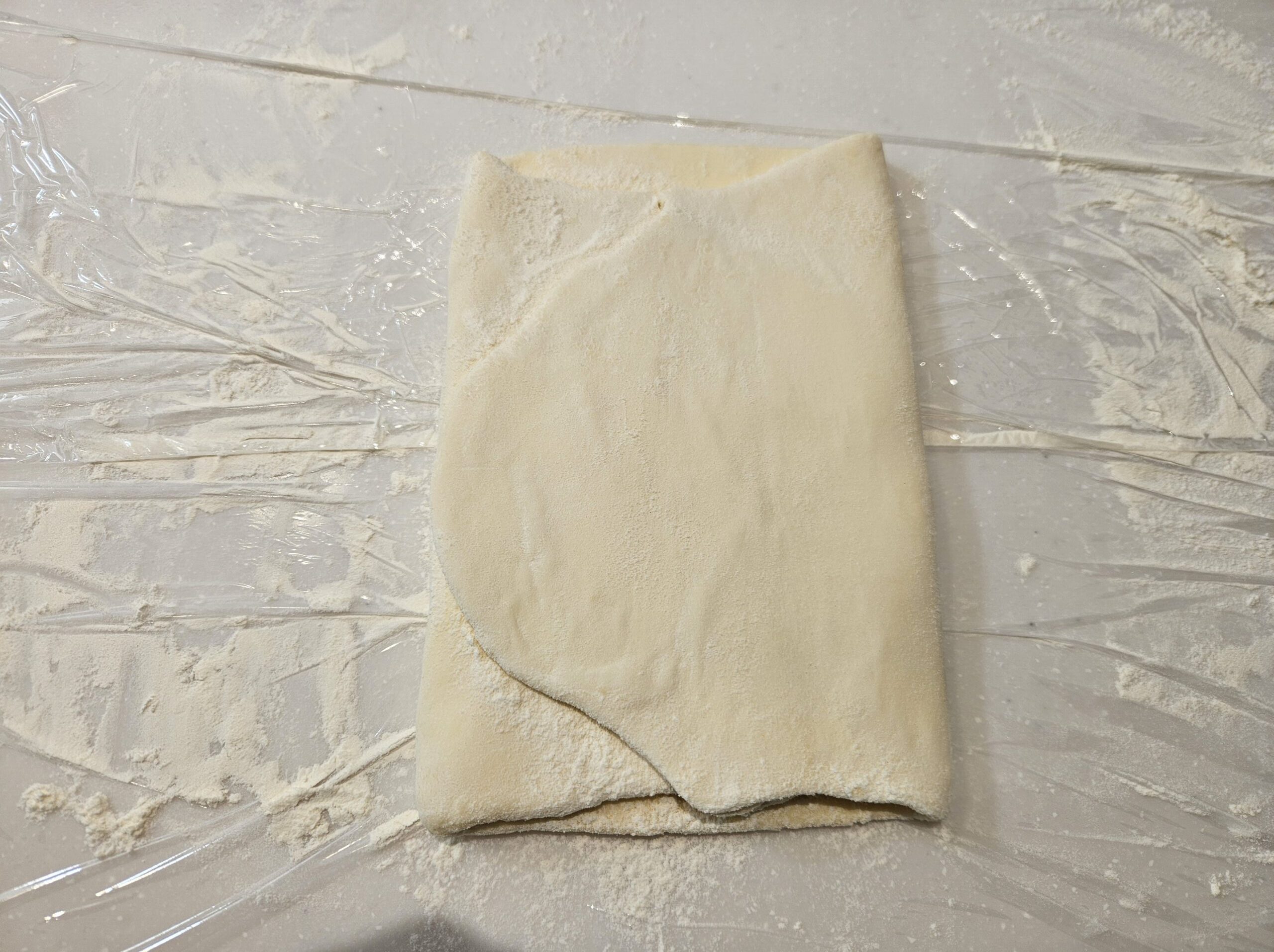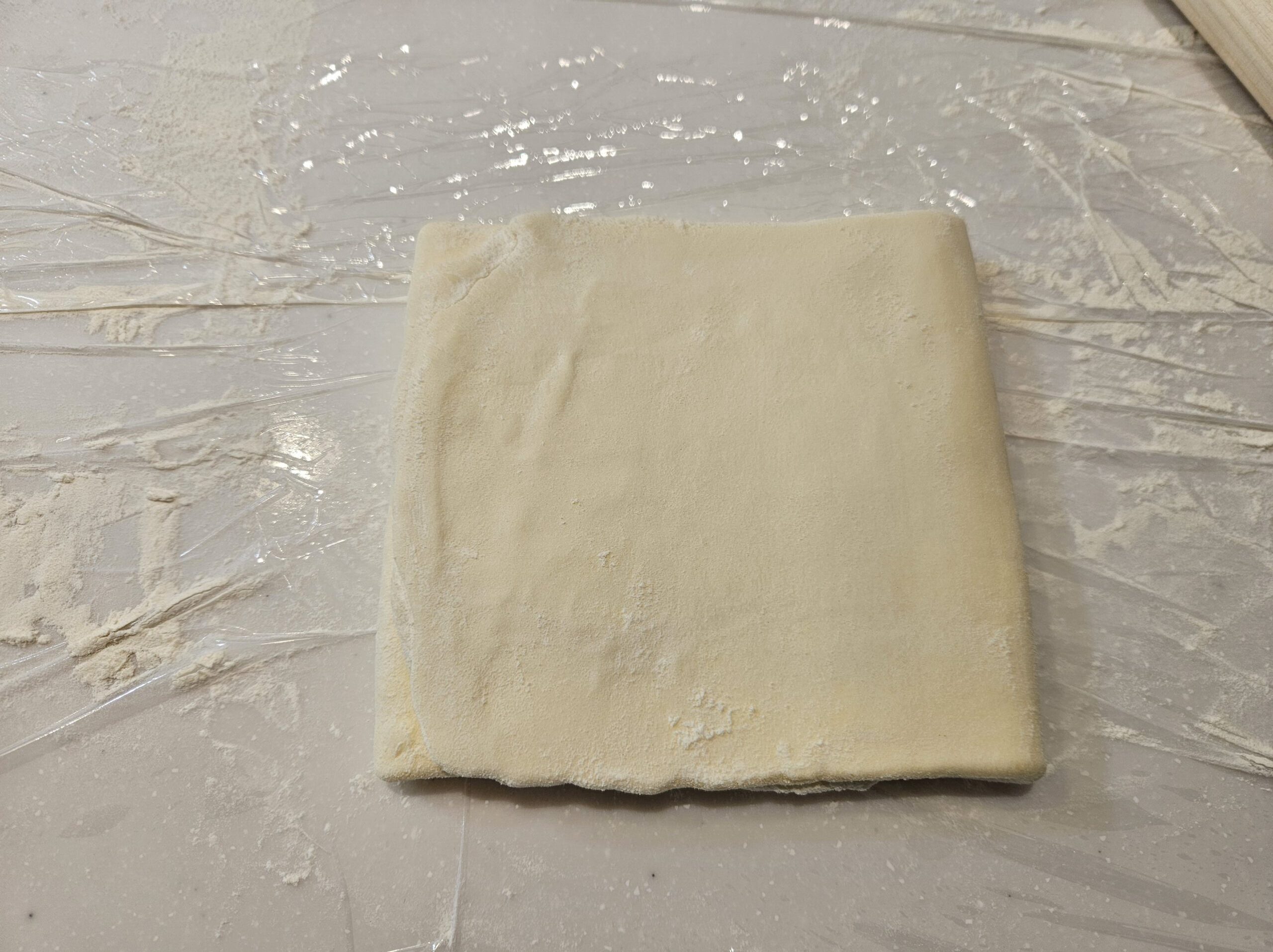 生地を取り出し、正方形に広げます。