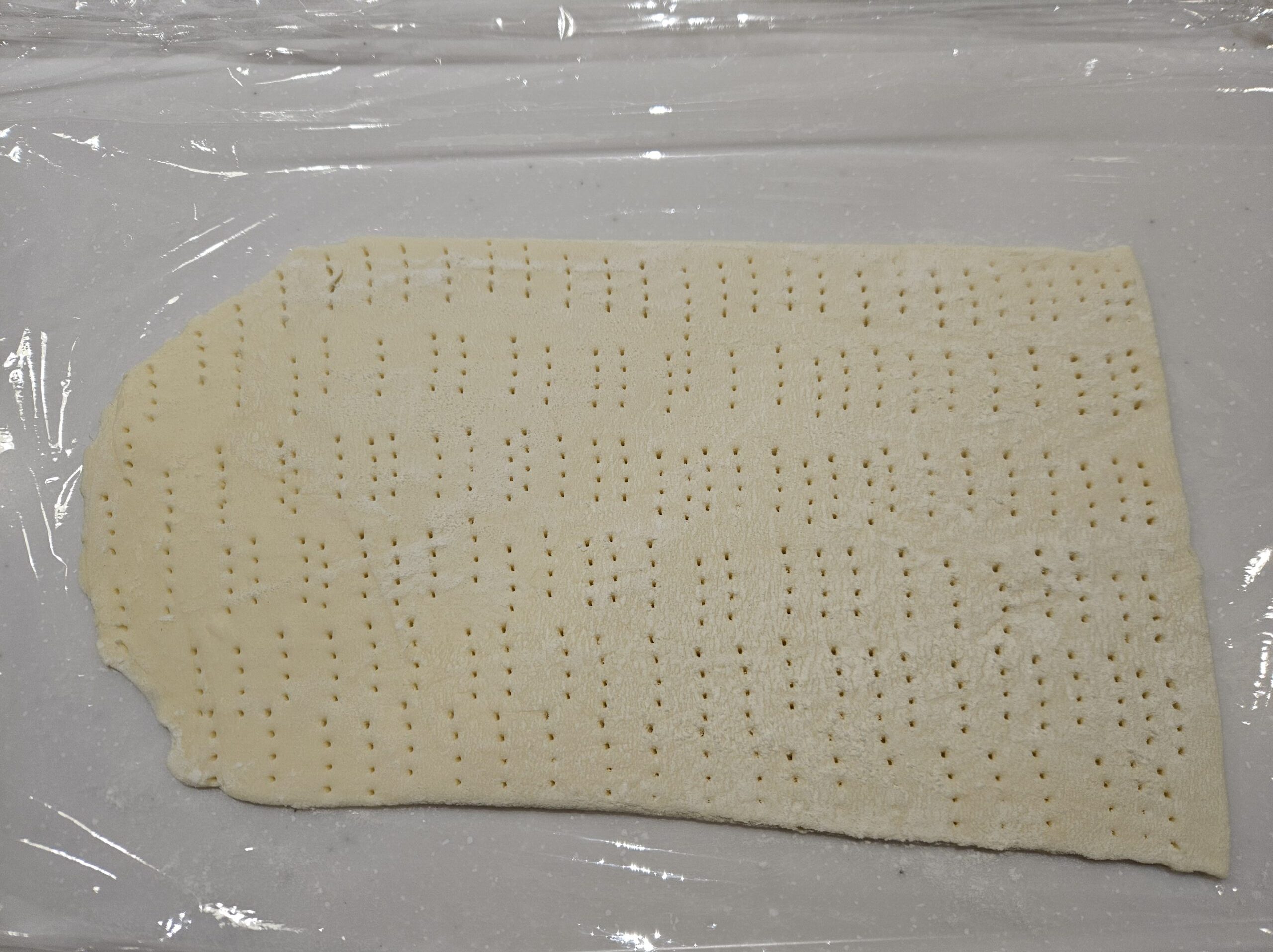 生地を薄く延ばして、全体にピケします。