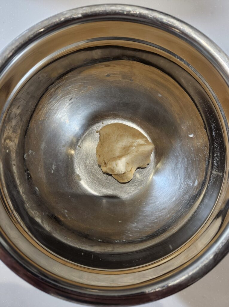 いくらこねても生地がまとまらなかったら、強力粉を加えて硬さを調節します。